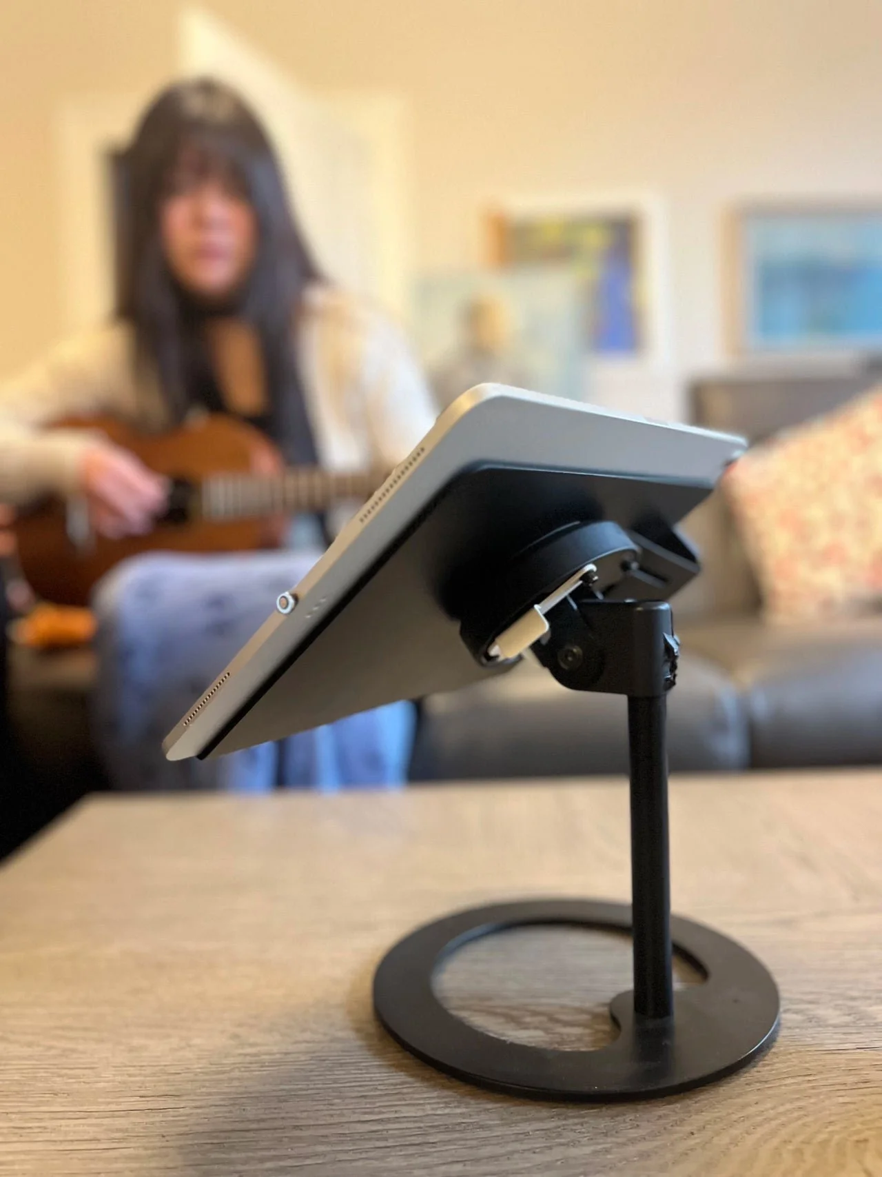 Musicians invest thousands in beautiful instruments, then prop their sheet music on utilitarian wire stands that clash with everything in the room. Traditional stands force compromises—limited height range, fixed media plates that can't accommodate tablets or laptops, and generic industrial aesthetics that look out of place in a home.